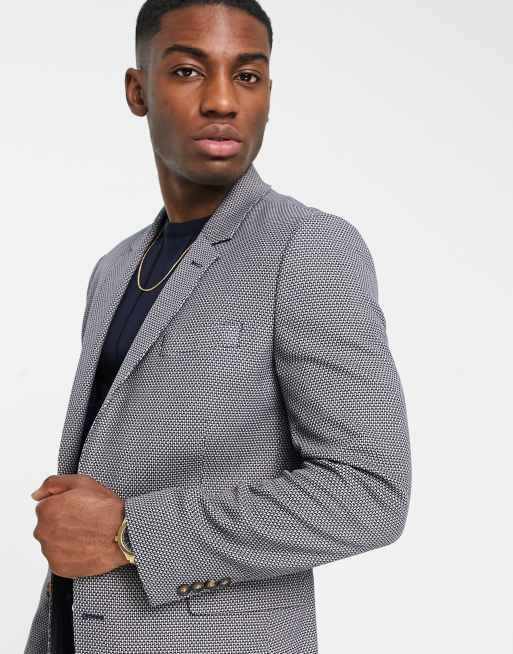 ASOS DESIGN – Schmale Anzugjacke in Grau mit Birdseye-Muster