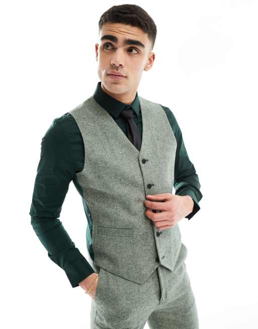 ASOS DESIGN – Schmale Anzugweste aus Wollmix-Tweed in Flaschengrün
