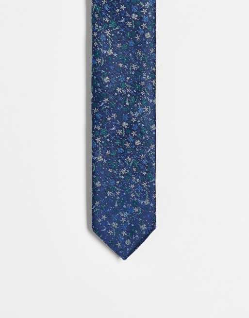 ASOS DESIGN – Schmale Krawatte in Marineblau mit Blümchenmuster