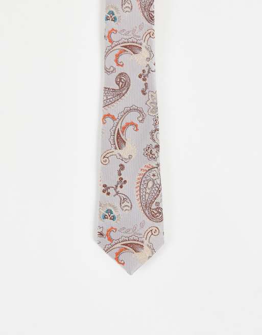 ASOS DESIGN – Schmale Krawatte in Roségold mit Paisley-Muster