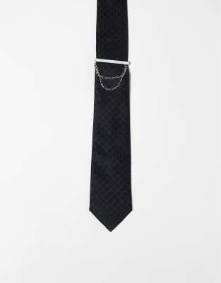 ASOS DESIGN – Schmale Krawatte in Schwarz mit Krawattenklammer