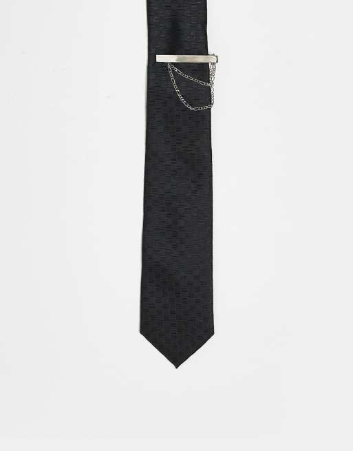 ASOS DESIGN – Schmale Krawatte in Schwarz mit Krawattenklammer