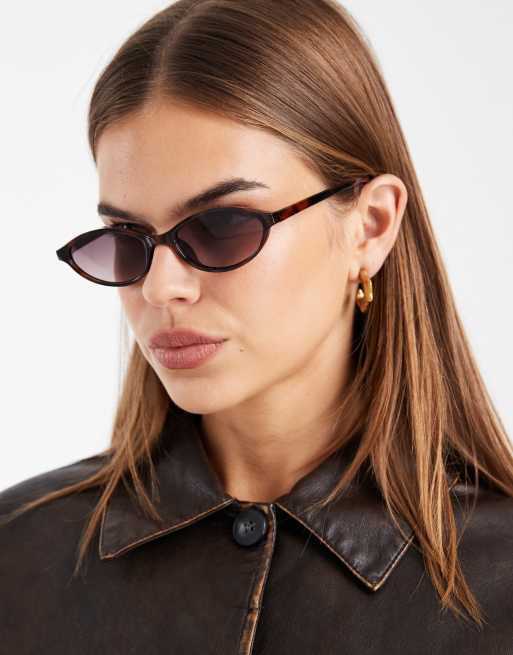 ASOS DESIGN – Schmale, ovale Sonnenbrille in Schildpatt-Optik