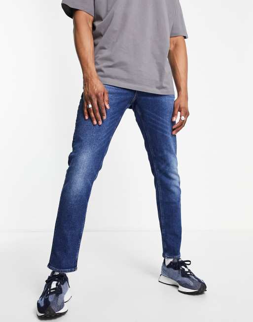ASOS DESIGN – Schmale Stretch-Jeans in verwaschenem Dunkelblau