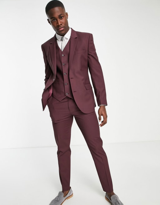 ASOS DESIGN – Schmaler Anzug in Burgund
