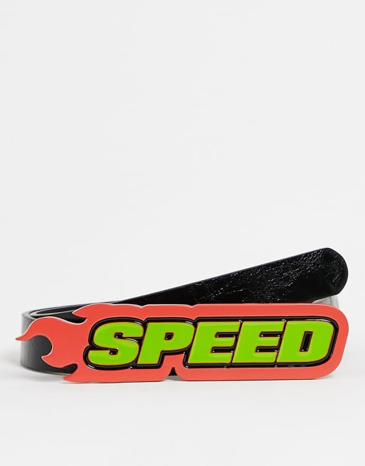 ASOS DESIGN – Schmaler Gürtel aus Kunstleder in Schwarz mit „Speed“-Schnalle