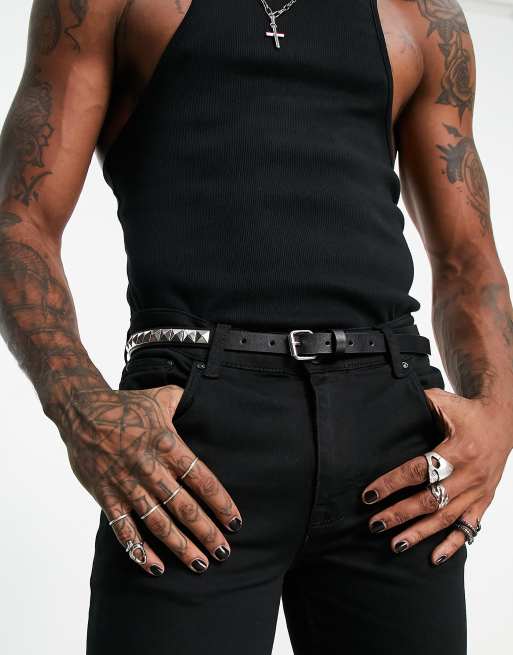 ASOS DESIGN – Schmaler Gürtel in Schwarz mit Nieten