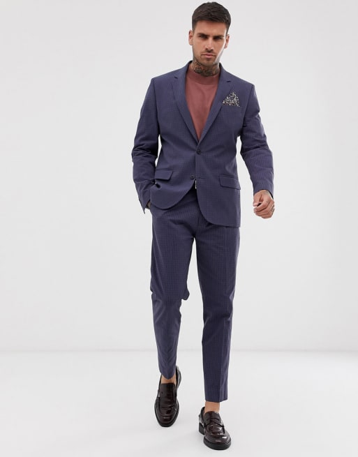 ASOS DESIGN – Schmaler Hochzeitsanzug aus Seersucker mit Gittermuster in Marine