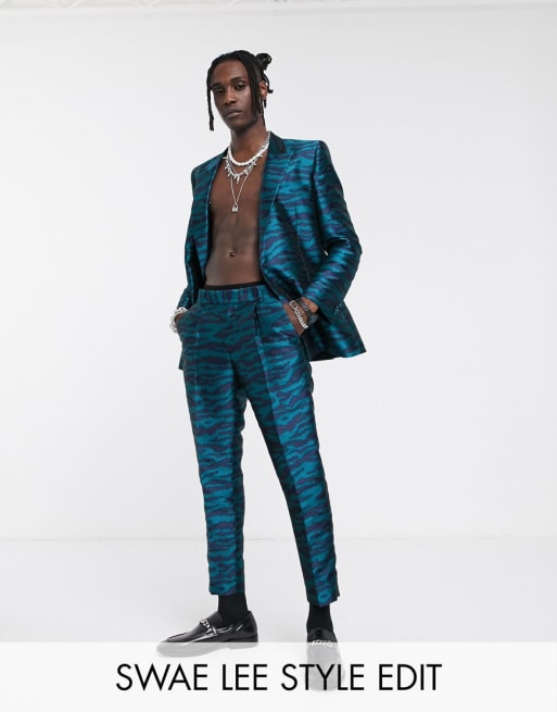 ASOS DESIGN – Schmaler, marineblauer Jacquard-Smoking mit Tigerstreifen