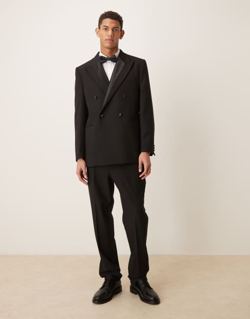 ASOS DESIGN – Schmaler Smoking in Schwarz mit Satindetail