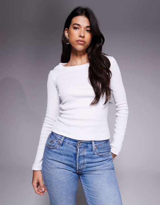 ASOS DESIGN – Schmales geripptes Top in Elfenbein mit breitem U-Boot-Ausschnitt