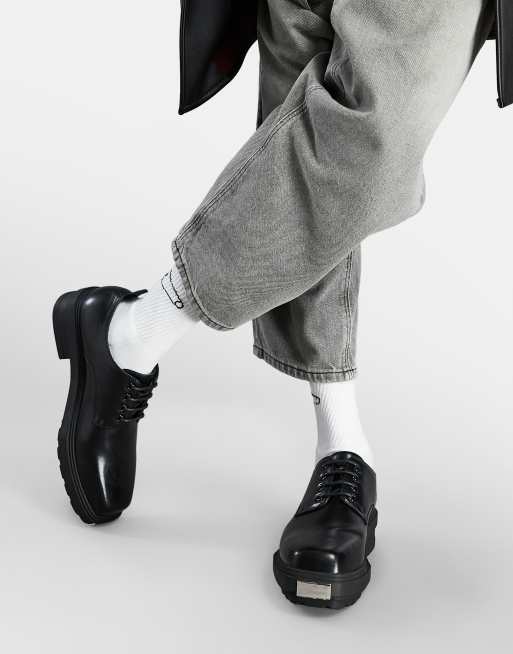 ASOS DESIGN – Schnürschuhe aus schwarzem Kunstleder mit gemusterter Sohle