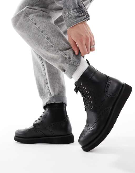 ASOS DESIGN – Schnürstiefel im Budapester Stil in Schwarz mit Keilabsatz