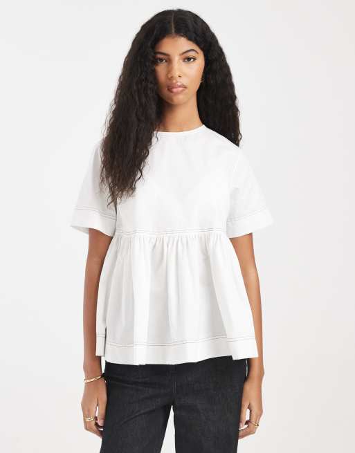 ASOS DESIGN – Schößchenoberteil in Weiß mit Kontrastnaht