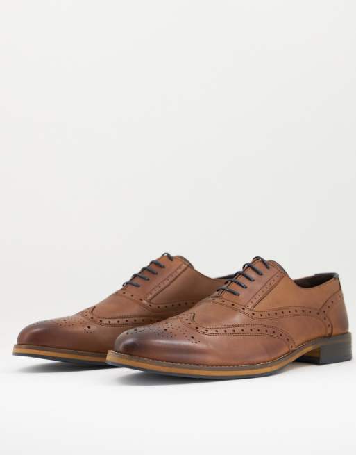 ASOS DESIGN – Schuhe im Budapester Stil aus braunem Leder mit Natursohle und farbigen Verzierungen