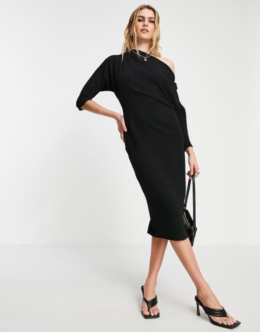 ASOS DESIGN – Schulterfreies Midi-Bleistiftkleid in Schwarz