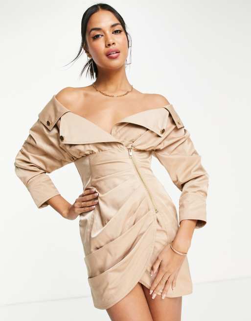 ASOS DESIGN – Schulterfreies Minikleid mit Struktur und Utility-Minirock mit Reißverschluss