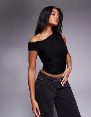 ASOS DESIGN – Schulterfreies, strukturiertes Oberteil in Schwarz mit Raffung