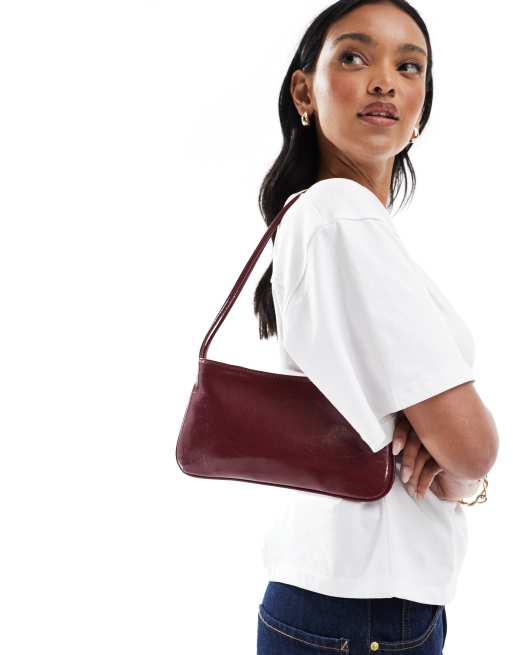ASOS DESIGN – Schultertasche in Burgunderrot mit schmalem Doppelriemen