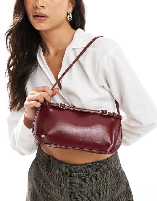 ASOS DESIGN – Schultertasche in Burgunderrot mit Schnallendetail