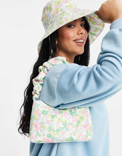 ASOS DESIGN – Schultertasche mit gerüschtem Riemen und Blümchenmuster