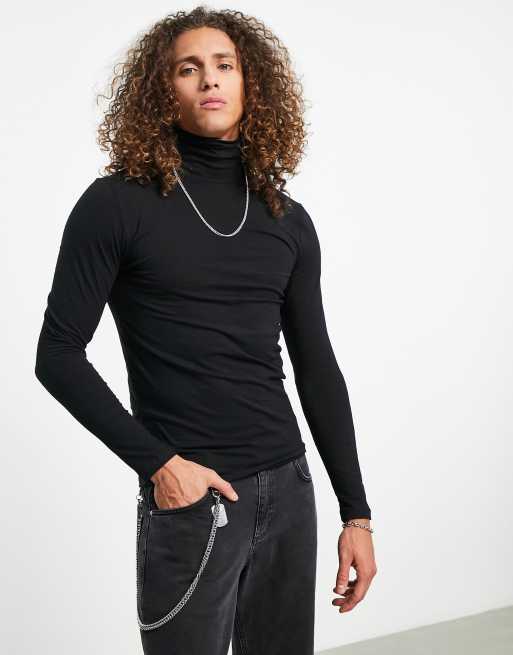 ASOS DESIGN – Schwarzer Jersey-Muskelpullover mit Rollkragen