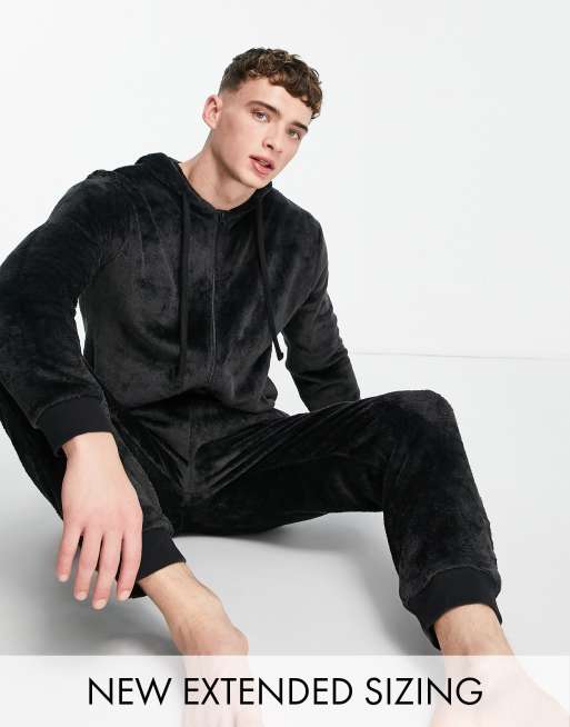 ASOS DESIGN – Schwarzer Lounge-Onesie aus Fleece