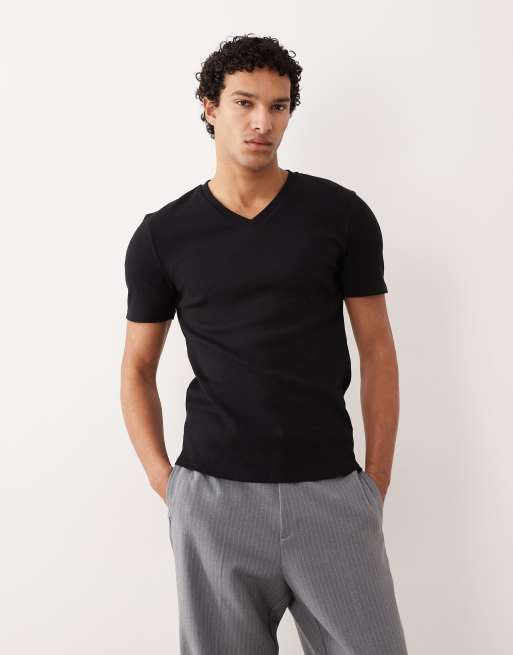 ASOS DESIGN – Schwarzes, geripptes Muskelshirt mit V-Ausschnitt