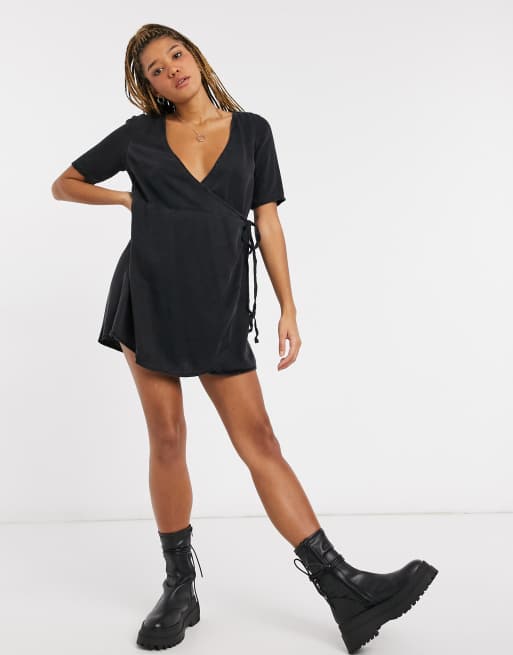 ASOS DESIGN – Schwarzes Hängerkleid aus weichem Denim mit Wickeldesign