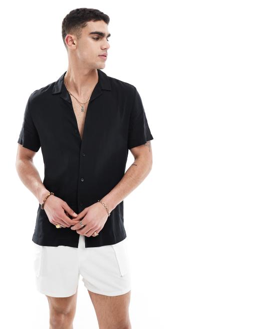 ASOS DESIGN – Schwarzes Viskosehemd mit Reverskragen in normaler Passform