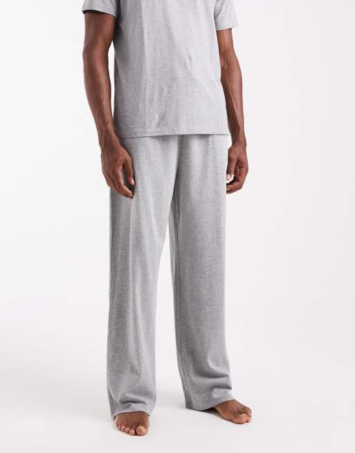 ASOS DESIGN – Schwere Pyjamahose in grau meliert mit weitem Bein