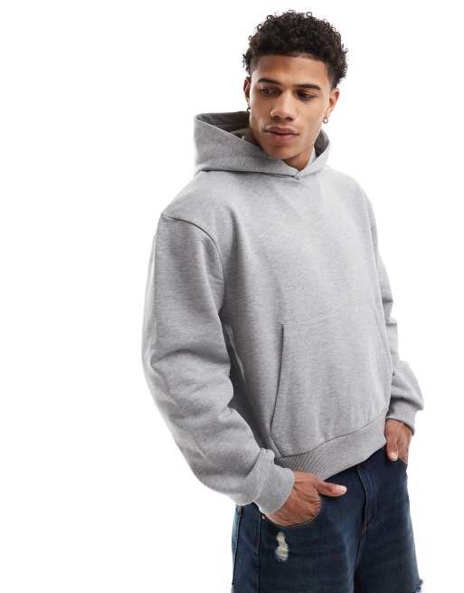 ASOS DESIGN – Schwerer, kastiger Oversize-Kapuzenpullover in Grau meliert, 400 g/m²