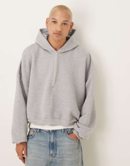 ASOS DESIGN – Schwerer kurzer Kapuzenpullover in Grau mit kurzem Reißverschluss und extremer Oversize-Passform