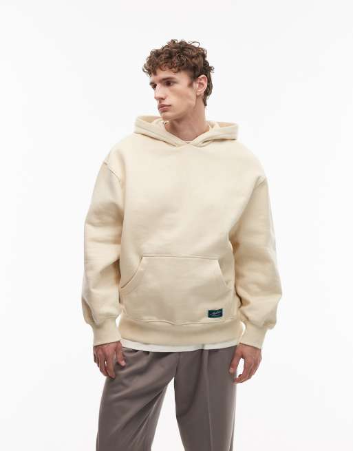 ASOS DESIGN – Schwerer Oversize-Kapuzenpullover mit Aufnäher aus Webstoff in Gelb, 400 g/m²