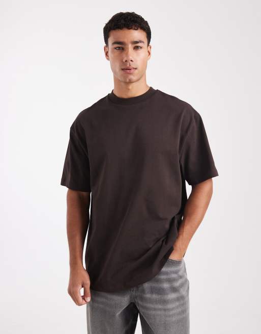 ASOS DESIGN – Schweres, hochgeschlossenes T-Shirt in Dunkelbraun mit lockerem Schnitt