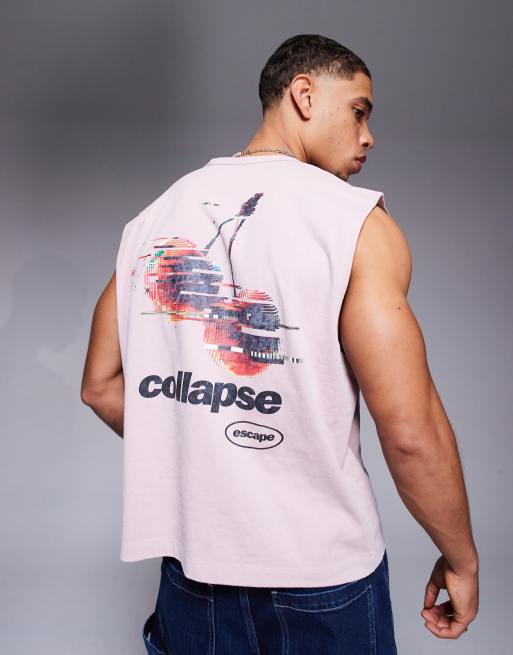 ASOS DESIGN – Schweres, kastiges Oversize-Tanktop in verwaschenem Rosa mit Obst-Grafikprint