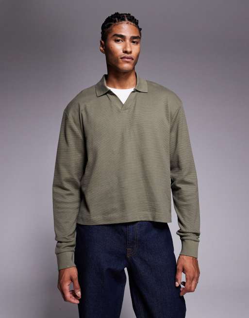 ASOS DESIGN – Schweres Oversize-Polohemd in Khaki mit Struktur und Einkerbung
