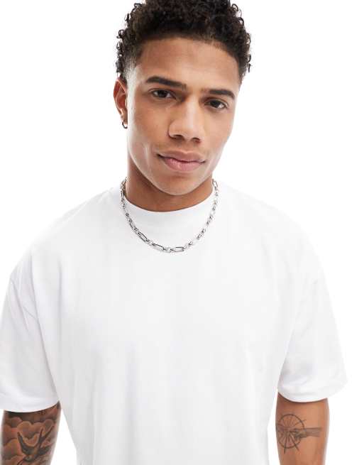 ASOS DESIGN – Schweres Oversize-T-Shirt in Weiß mit Stufensaum