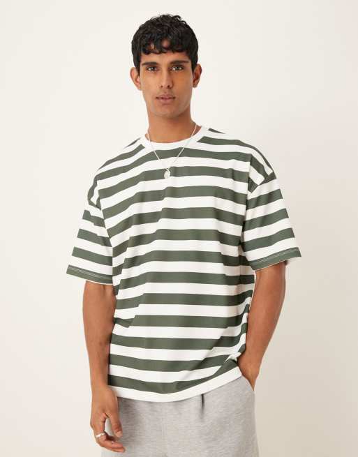 ASOS DESIGN – Schweres Oversize-T-Shirt mit breiten Streifen in Grün und Weiß