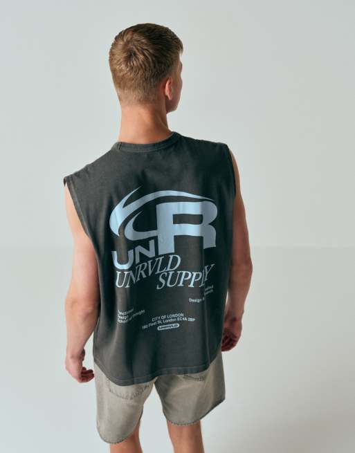ASOS DESIGN – Schweres Oversize-Tanktop in verwaschenem Grau mit Text-Grafikprint