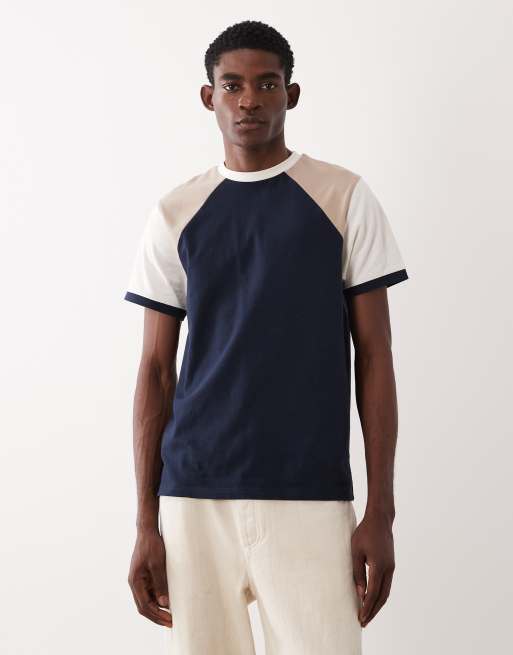 ASOS DESIGN – Schweres Regular-Fit-T-Shirt in Cremeweiß mit farblich abgesetzten Ärmeln
