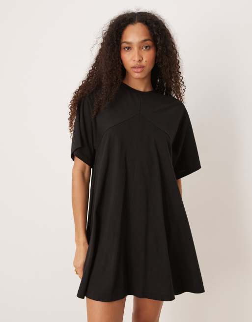 ASOS DESIGN – Schwingendes T-Shirt-Kleid in Schwarz mit Fransendetails hinten