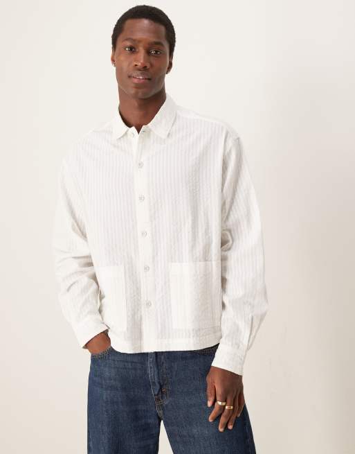 ASOS DESIGN – Seersucker-Hemd in Weiß mit kastigem Schnitt in regulärer Passform