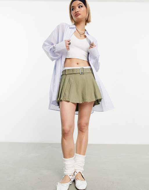 ASOS DESIGN – Sehr kurzer Skort in Khaki mit Falten und Schnalle