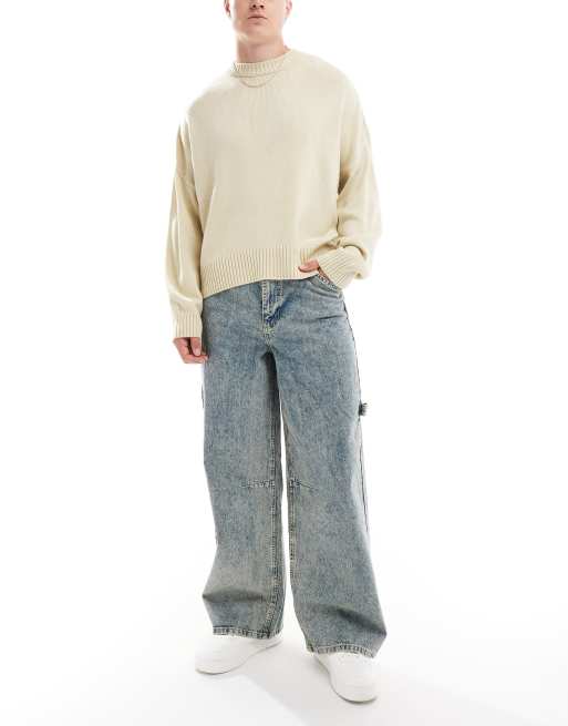 ASOS DESIGN – Sehr weit geschnittene Jeans mit Zimmermann-Details, Snow-Waschung und Tönung