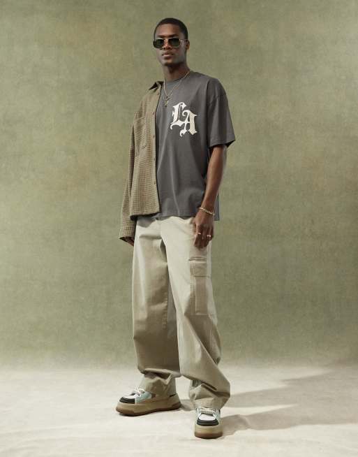 ASOS DESIGN – Sehr weite Cargohose in Beige mit elastischem Bund