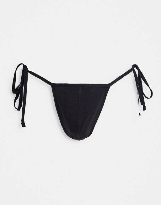 ASOS DESIGN – Seitlich gebundener Tanga in Schwarz