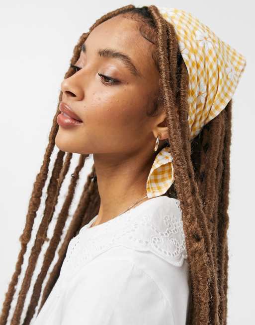 ASOS DESIGN – Senfgelbes Kopftuch mit Gänseblümchen und Vichy-Karos
