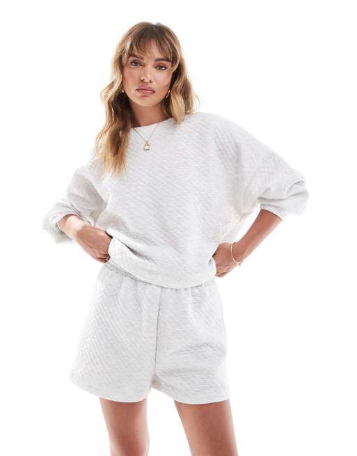 ASOS DESIGN – Set aus gestepptem Sweatshirt und Shorts in grau meliert