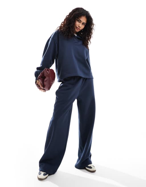ASOS DESIGN – Set aus Henley-Sweatshirt mit Oversize-Passform und Jogginghose in Marineblau